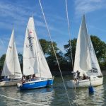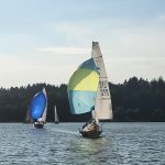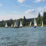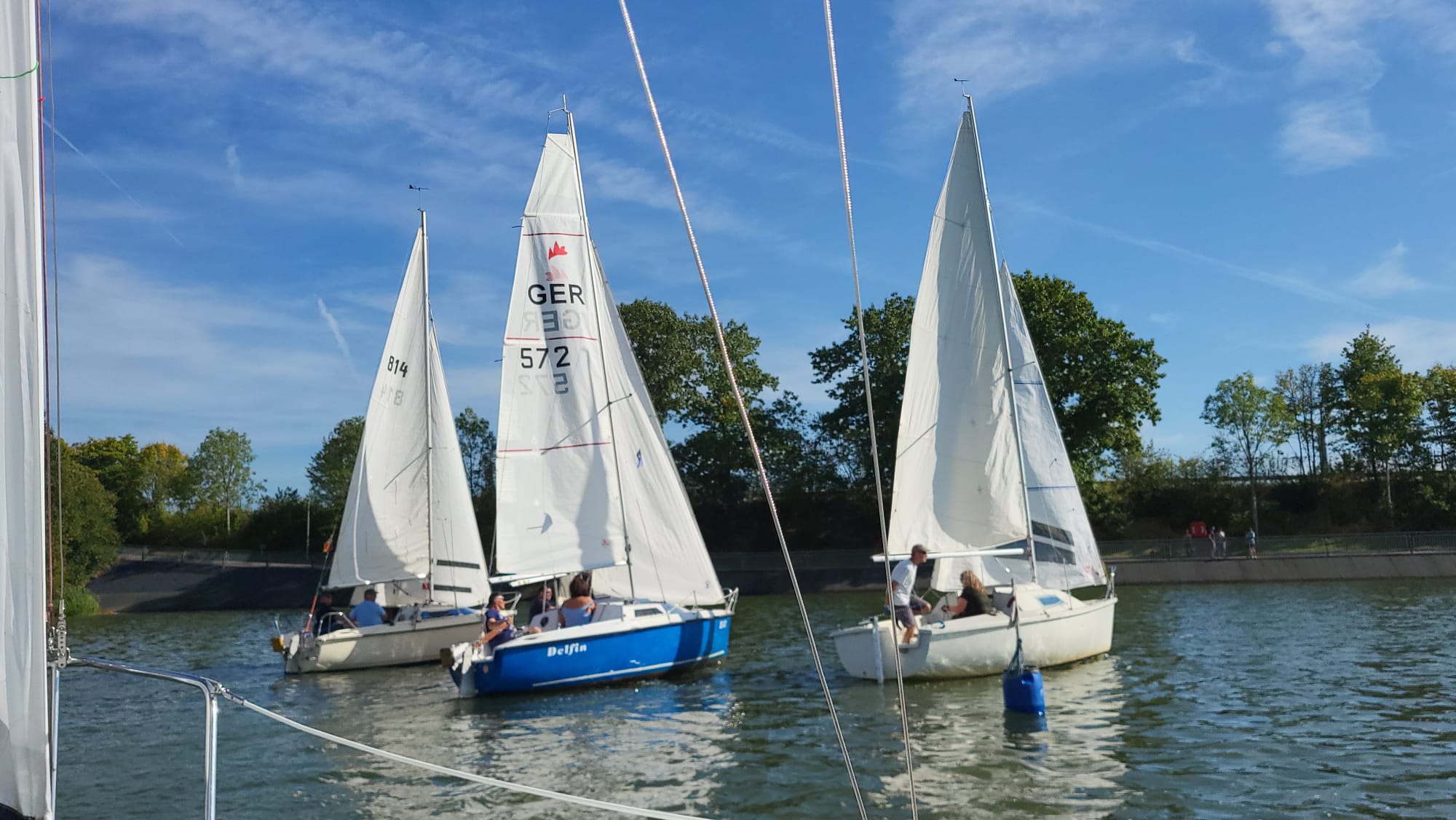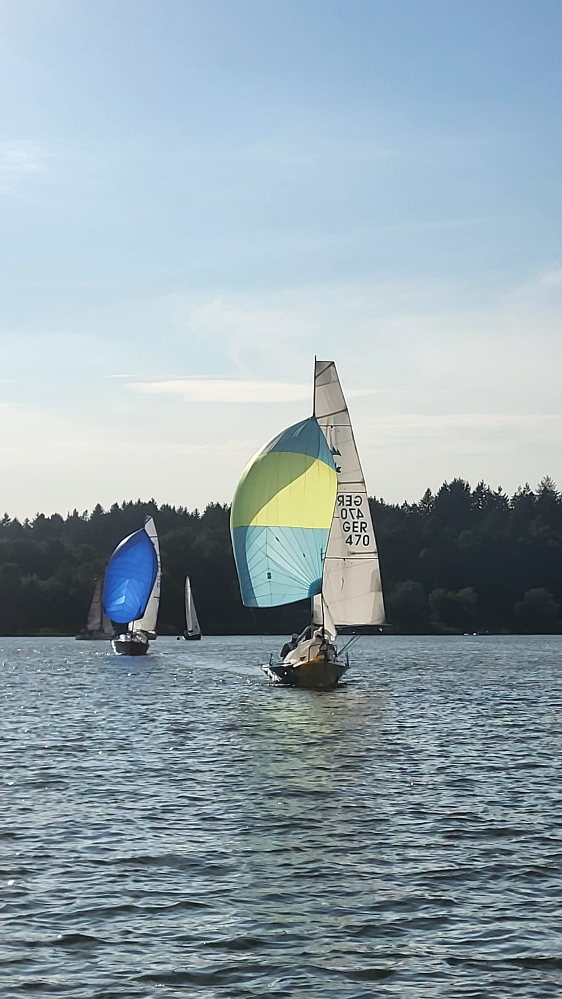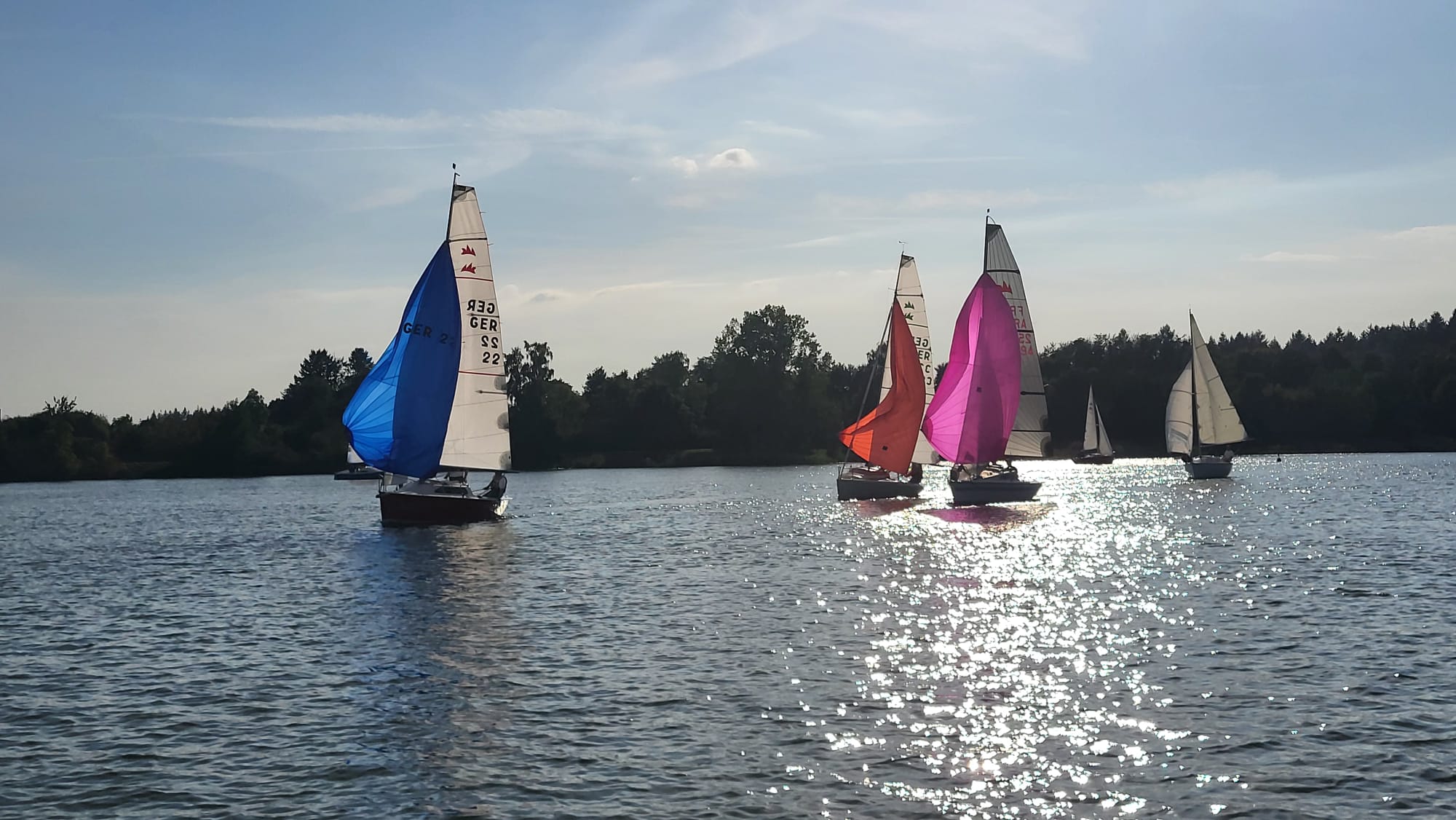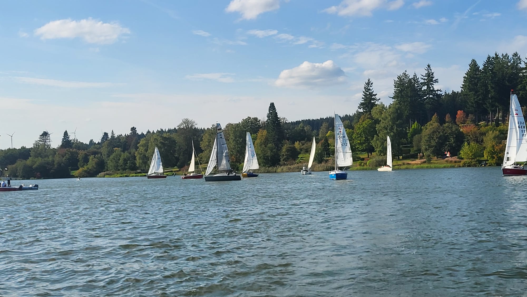 Bei einem geselligen Seglerhock am Abend mit gutem Essen und guten Gesprächen klang der Tag aus. Am Sonntag nach gutem Frühstück forderte die Regattaleitung um Guido und Oliver Becker nochmals alle Crews bei Regen zum letzten Lauf, der aber zum Wettkampf mit dem nachlassenden Wind wurde.